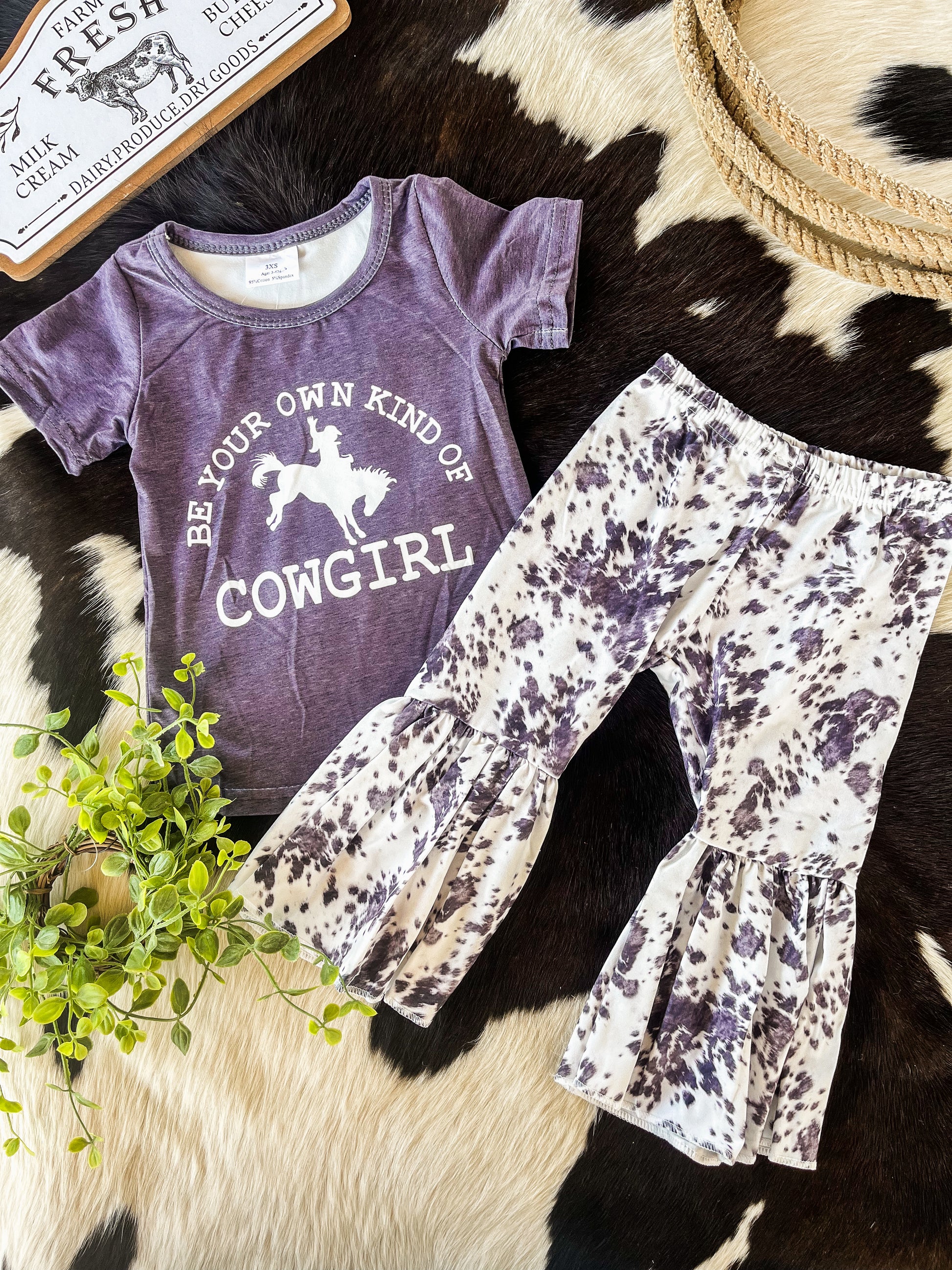 Saddle up for style and adventure with our "Be Your Own Kind of Cowgirl" Bell Bottom Set, featuring chic cow print pants that are as fun as they are fashionable.