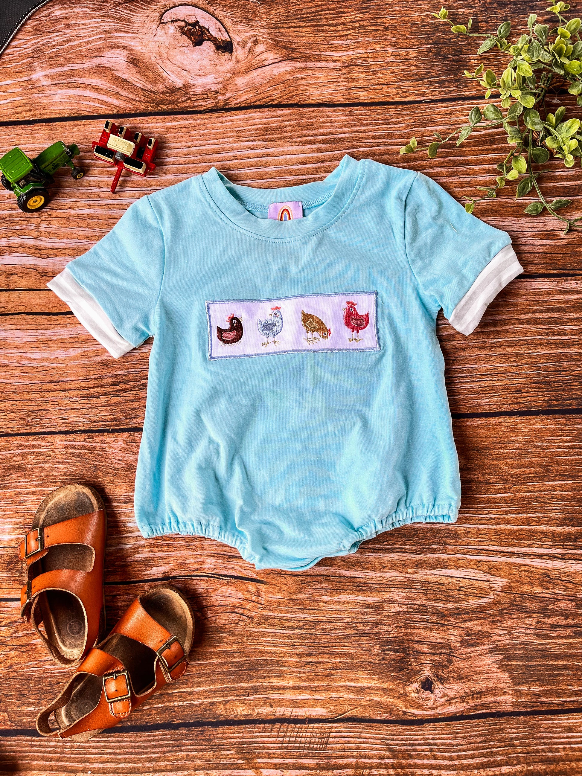 Adding a playful touch, the front of the bubble is adorned with a cheerful chicken appliqué in vibrant colors. The whimsical design captures the imagination and brings smiles wherever your baby goes.