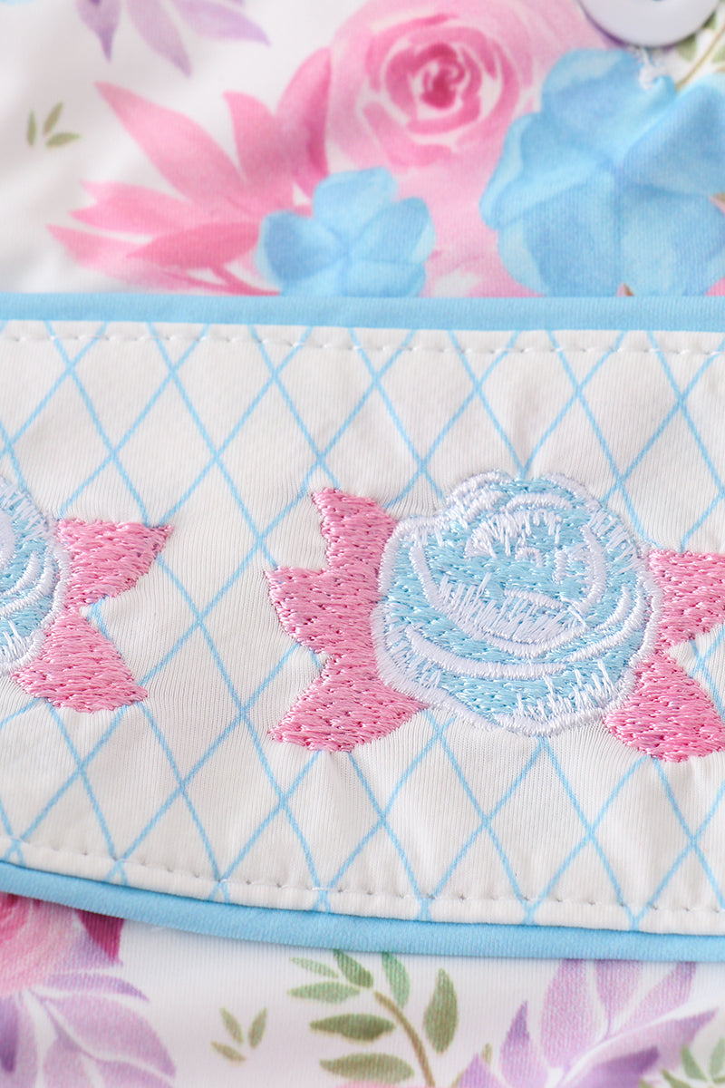 Blue floral embroidery one-piece swimsuit