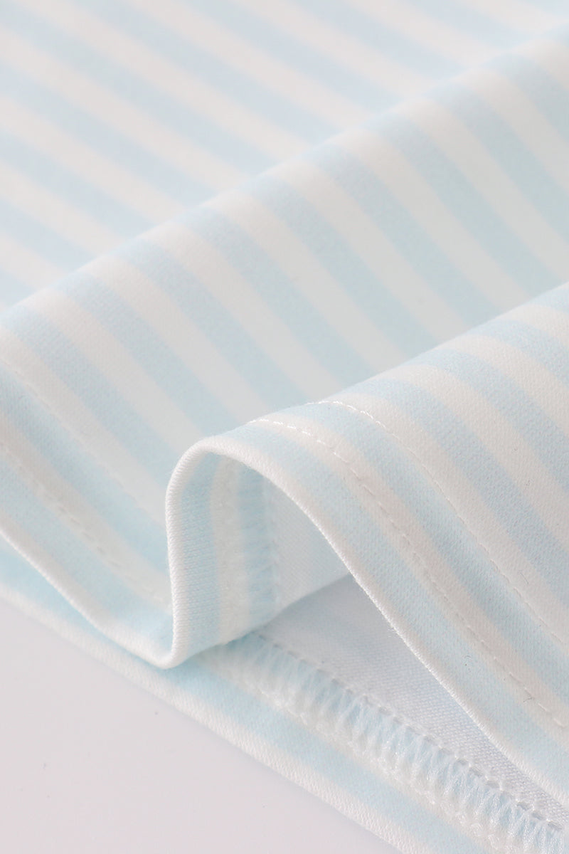 Blue pumpkin embroidery stripe top