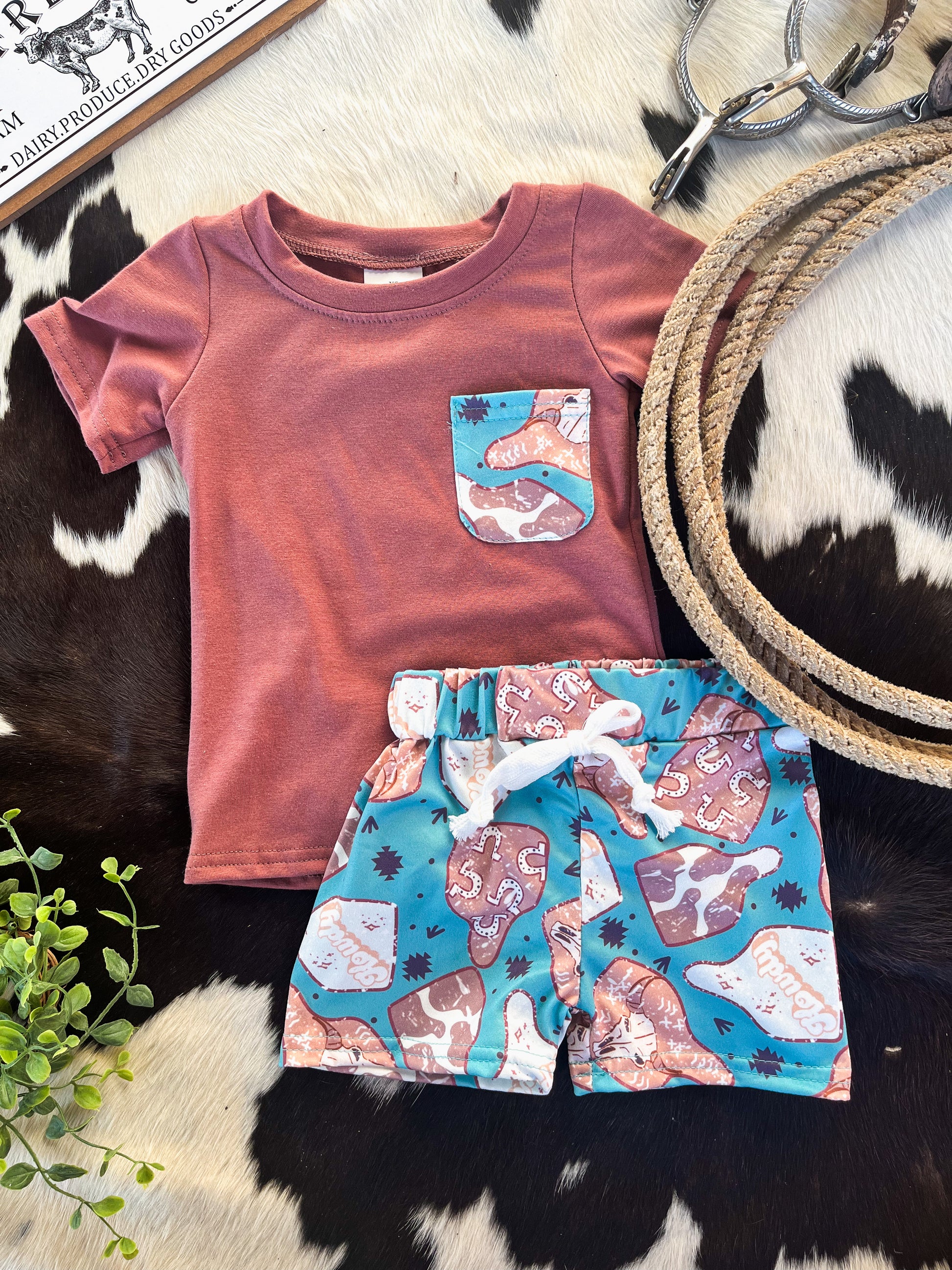 Whether romping around the backyard or heading out for family adventures, this Turquoise Blue Shorts and Matching Brown Shirt Set is sure to keep your little one looking adorable and feeling great. Embrace comfort and cuteness with this versatile ensemble!