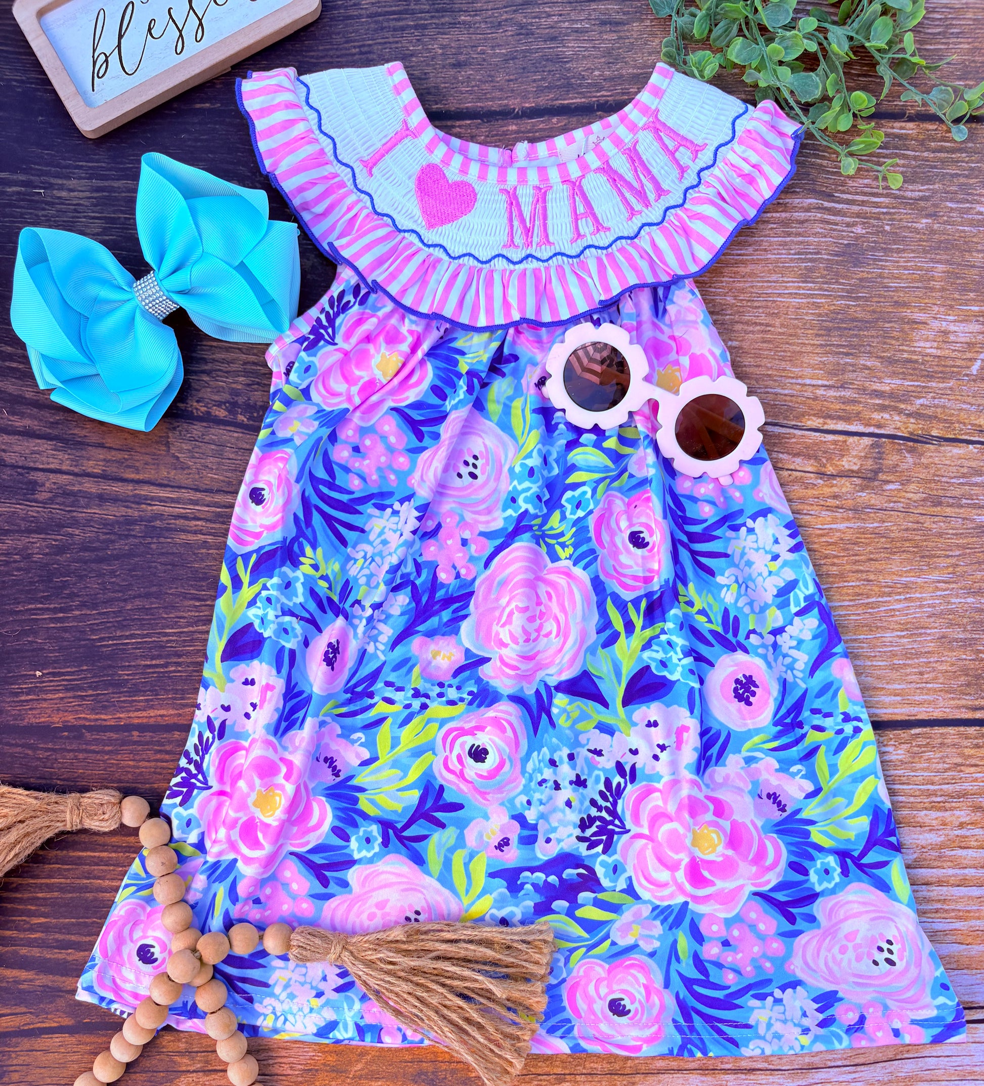 I Love Mama Smocked Dress